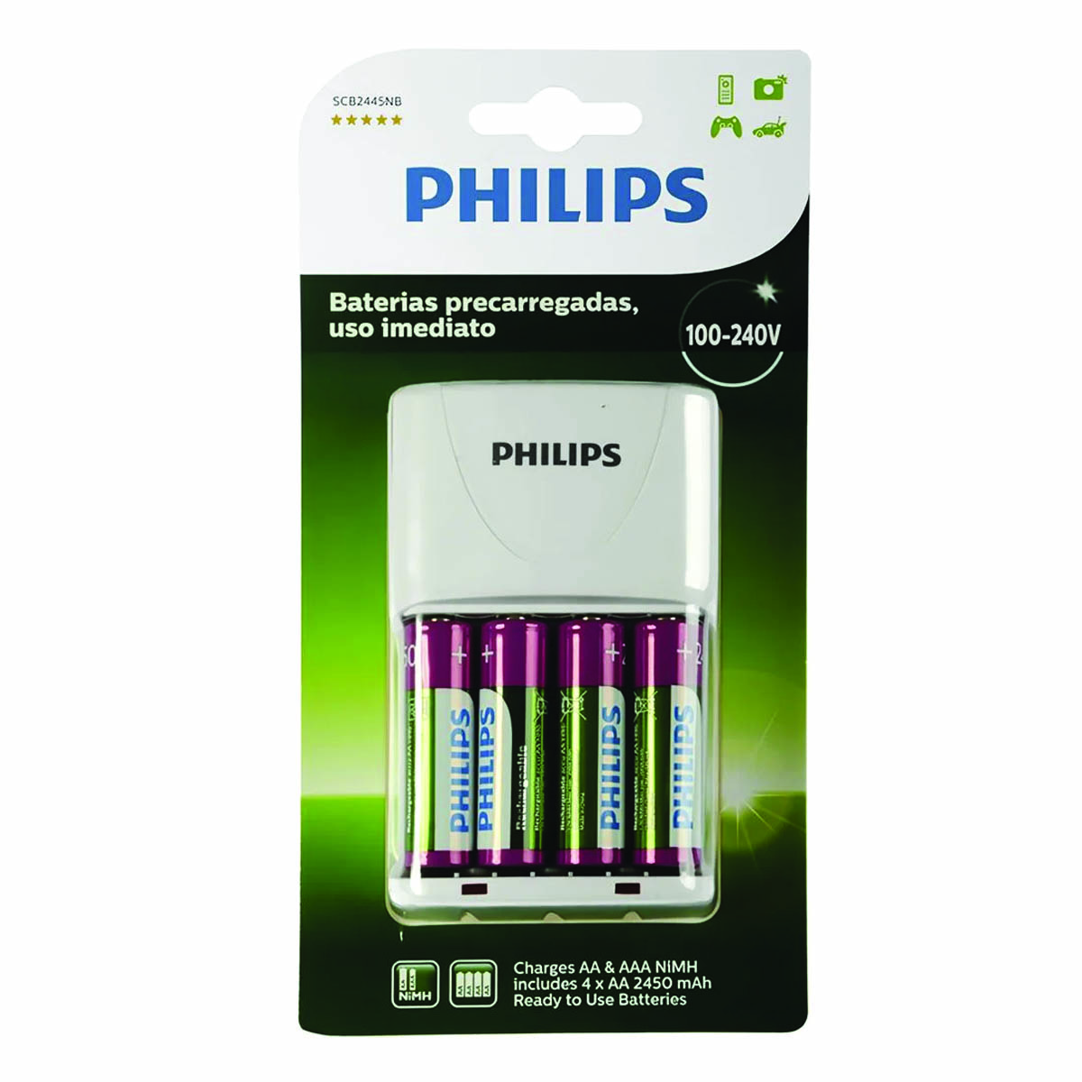 El Cargador de Pilas Philips SCB-2445NB/97 es una opción ideal para mantener tus dispositivos electrónicos funcionando de manera eficiente y económica. Este cargador viene con 4 pilas AA de 2450mAh incluidas, permitiéndote empezar a usarlo de inmediato. Con un voltaje de entrada de 100-240V, es adecuado para su uso en diversas regiones, proporcionando una carga rápida y segura para tus pilas. Su diseño compacto y fácil de usar permite cargar hasta 4 pilas simultáneamente, asegurando que siempre tengas energía disponible para tus dispositivos.